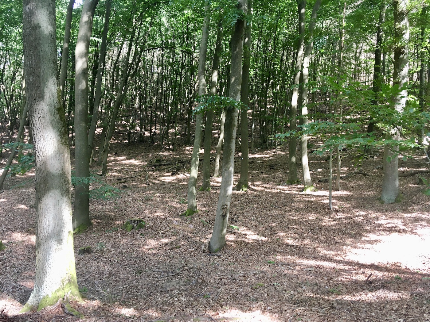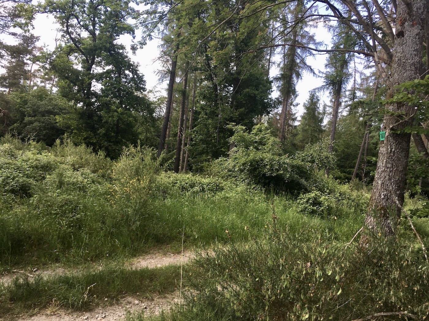 Kommen an einem Sportplatz raus, werden stutzig, weil – nach der gefühlten Schilder-Invasion bedenklich – nun schon seit hundert Metern kein Hinweis mehr zu sehen ist. Vielleicht sind wir auch zu verwöhnt, überlegen wir, gucken aber trotzdem auf die Karte. Nee, irgendwas stimmt hier nicht. Der Mann zückt seine Handyanbieter-eigene-Karten-App. Und das soll man im Wald vielleicht nicht unbedingt machen, denn: Sie ist entweder besonders arglistig oder unerhört verspielt. Jedenfalls schickt sie uns über Lichtungen, über die gefühlt noch kein Mensch vor uns gelaufen ist, schließlich querwaldein, über wald-sandigen, blättrigen, zweigen- und astbedeckten Boden, über Zapfen, die munter unter den Schuhen wegrutschen und man selbst gleich fast mit. Große, kantige Äste springen einem entgegen, wenn man ungewollt auf eines der Enden tritt. Es ist ein Abenteuer. Und: Es geht bergab. Wo sind die Schwälbchen?